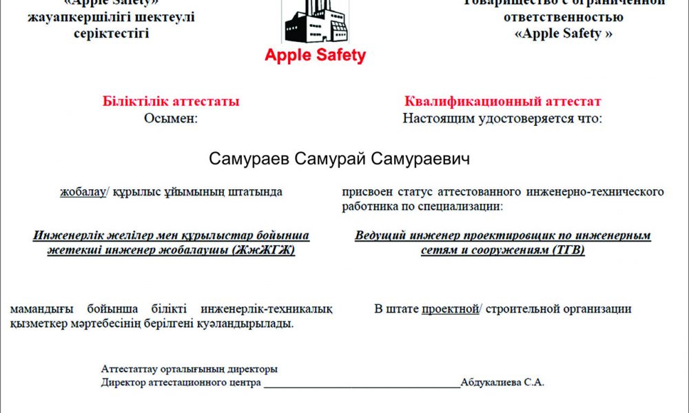 Полный пакет документов можете отправить на почту: promstudy@mail.ru или info@apple-safety.kz
